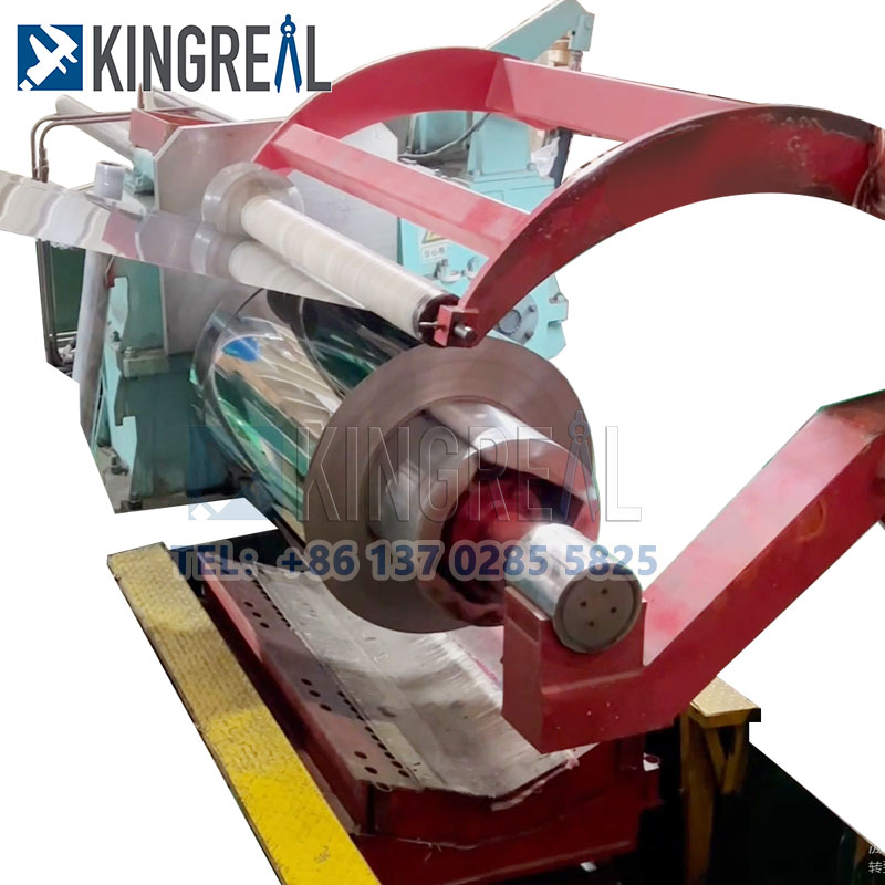 Kingreal Steel Slitter poskytuje vozík na nakladanie ťažkej cievky, ktorá dokáže pohodlnejšie vykonávať odvíjajúce sa práce.