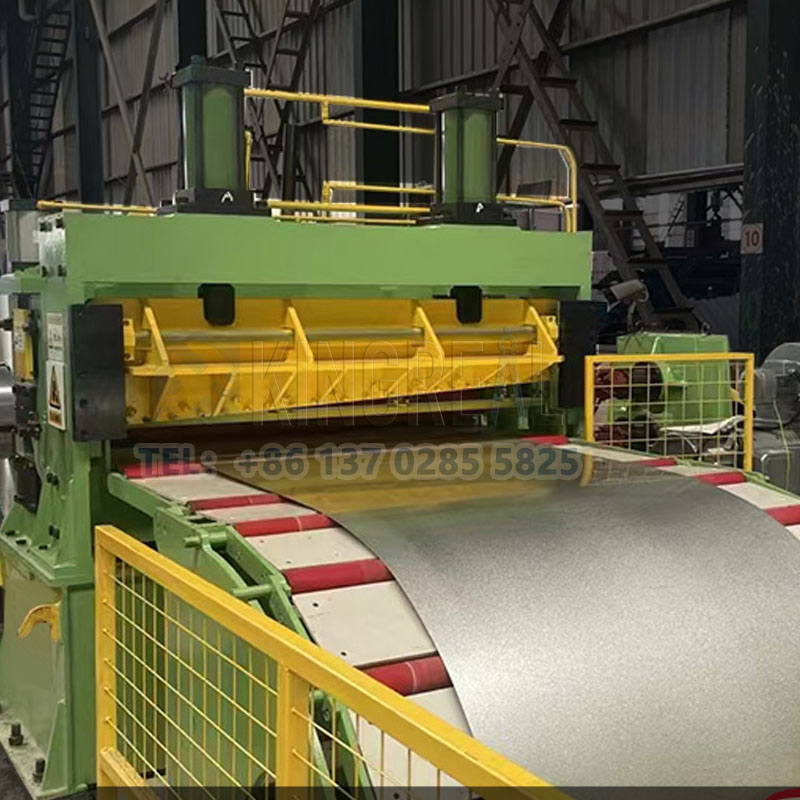 Stroj na rezanie cievok KINGREAL 1300MM s dvojitou rezacou hlavou je určený na presné rezanie hliníka, galvanizovanej ocele, valcovaných za tepla, za studena a mnohých ďalších bežných kovových kotúčov, aby vyhovoval rôznym požiadavkám zákazníkov na rezanie vrátane rýchlosti rezania, množstva a kvality.