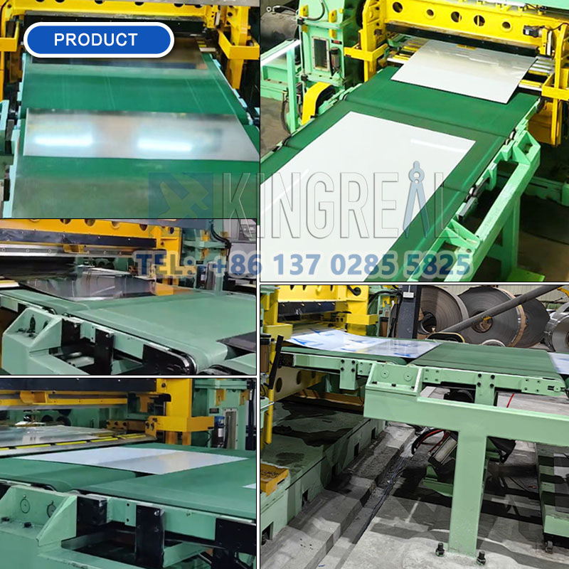 Plne automatická rezačka KINGREAL STEEL SLITTER je určená na rezanie rôznych zvitkov materiálu na požadovaný plech a stohovanie profilu, ktorý pozostáva hlavne z odvíjača, upínacieho vyrovnávača, rezačky, stohovača atď., a je vybavený pomocnými zariadeniami, ako je podávač, bočné vodiace zariadenie, prechodové zariadenie, dopravník atď.