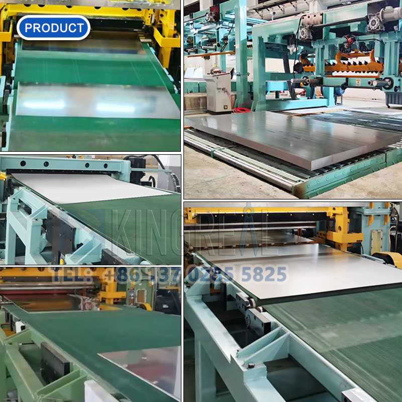 Výrobná linka na výrobu oceľových zvitkov KINGREAL na dĺžku zvyčajne zahŕňa komponenty ako odvíjač, vyrovnávač, nožnice na strihanie na dĺžku (lietajúce nožnice), dopravník a stohovač. Je široko používaný v odvetviach, ako sú výrobky z nehrdzavejúcej ocele, elektrické spotrebiče, výroba vozidiel a strojov atď. Je obzvlášť vhodný na spracovanie uhlíkovej ocele valcovanej za studena a za tepla, kremíkovej ocele, pocínovaného plechu, nehrdzavejúcej ocele a rôznych typov kovových zvitkov po povrchovej úprave.